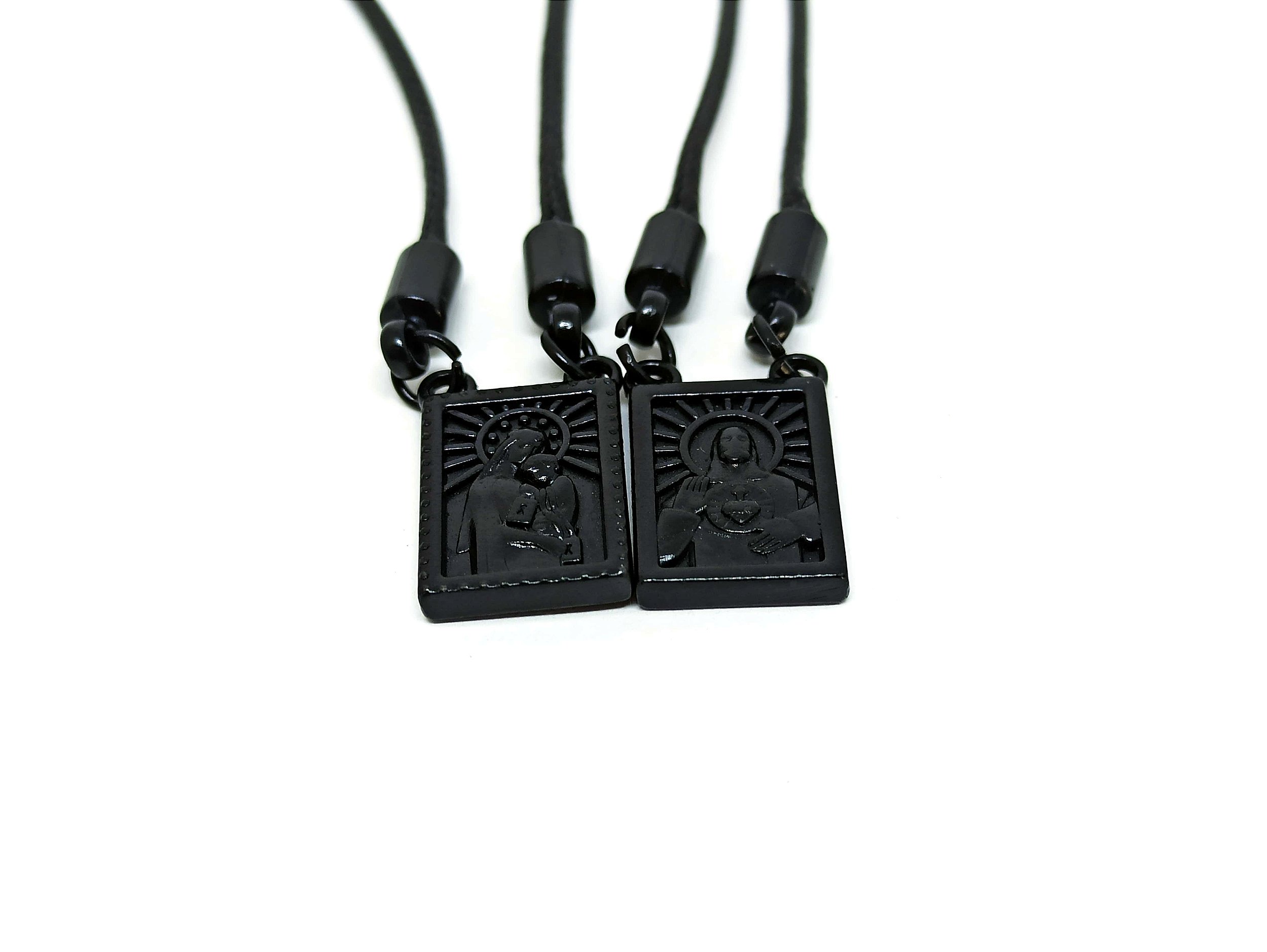 Nossa opção de escapulário, para homens religiosos que buscam estilo. Confeccionado em Fio Encerado, possui pingentes com banho preto.