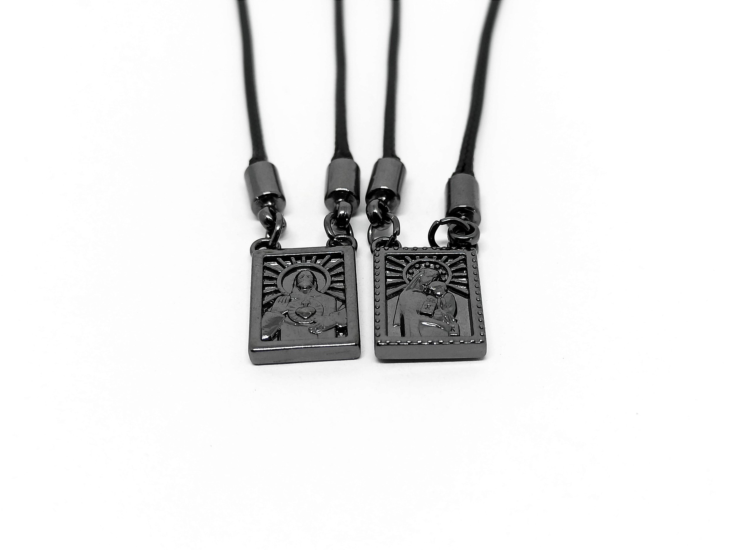 Nossa opção de escapulário, para homens religiosos que buscam estilo. Confeccionado em Fio Encerado, possui pingentes com banho grafite.