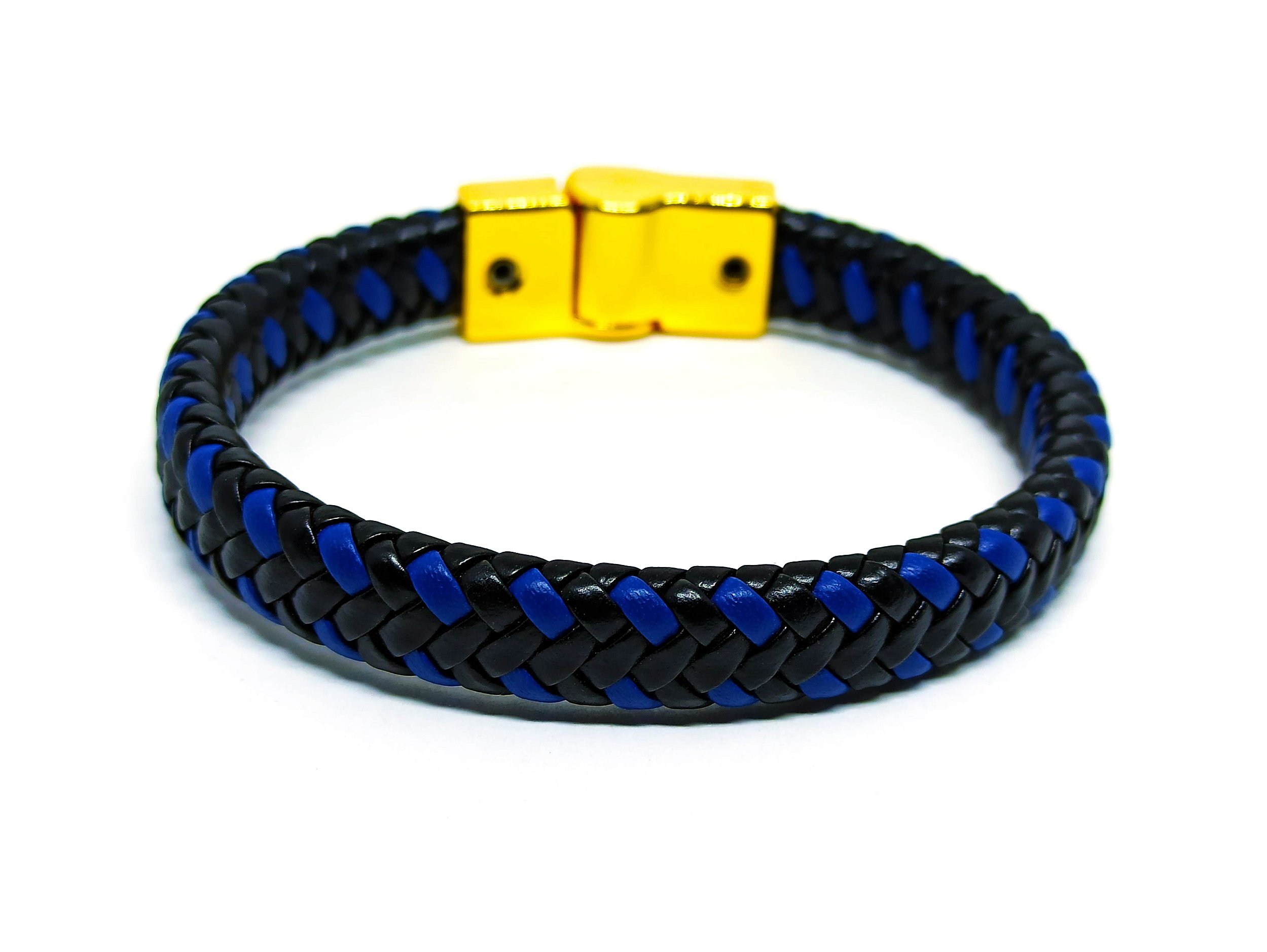 Oferecendo estilo, conforto e um design premium, esta pulseira é uma das estrelas de qualquer qualquer look. Composta por Couro trançado nas cores preto e azul e fecho magnético com banho dourado.