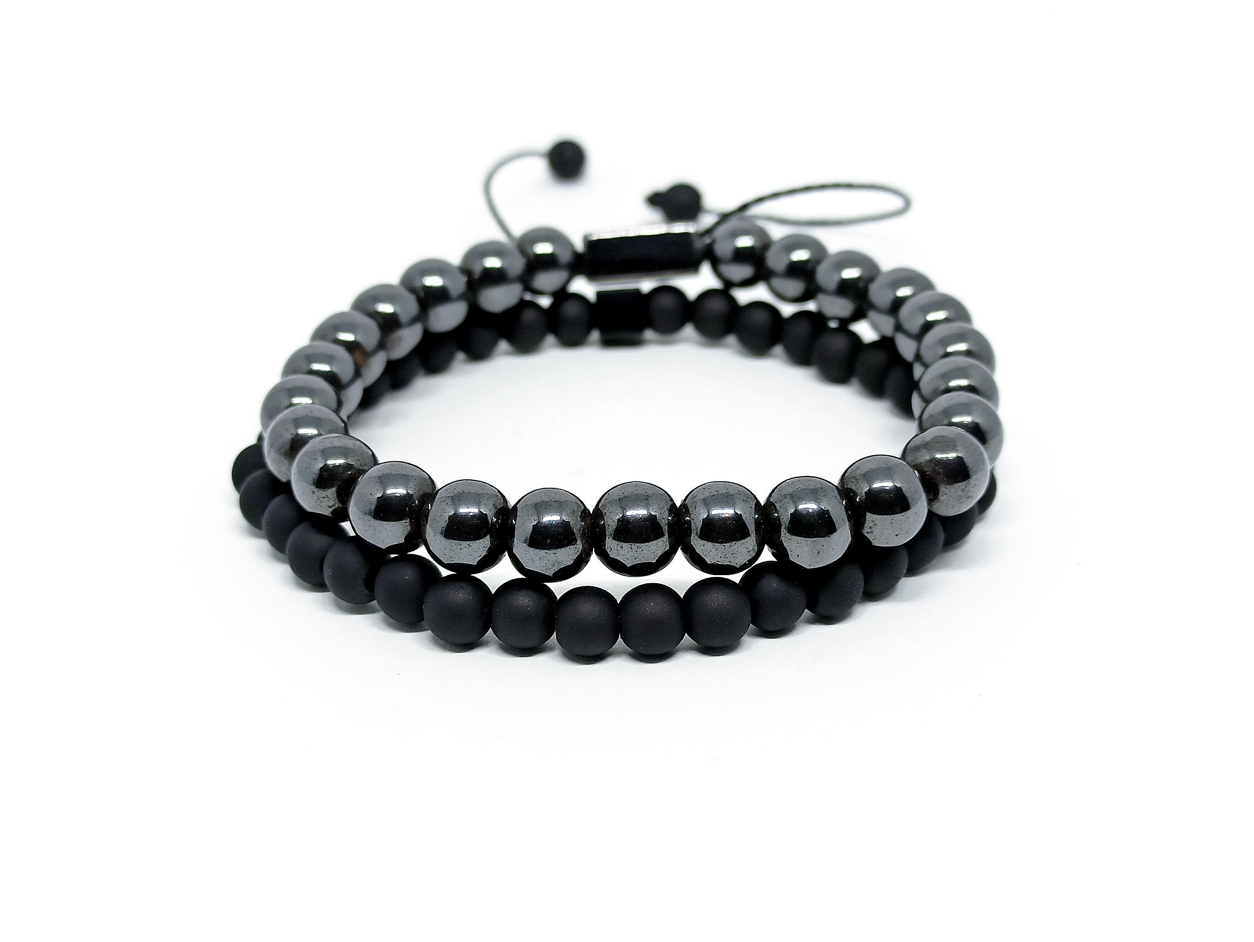 uma opção de kit básico e versátil. Sendo constituído por uma pulseira composta por contas de Hematita e uma de contas Sintéticas Emborrachadas, esta é uma opção que se encaixa em qualquer estilo e situação.