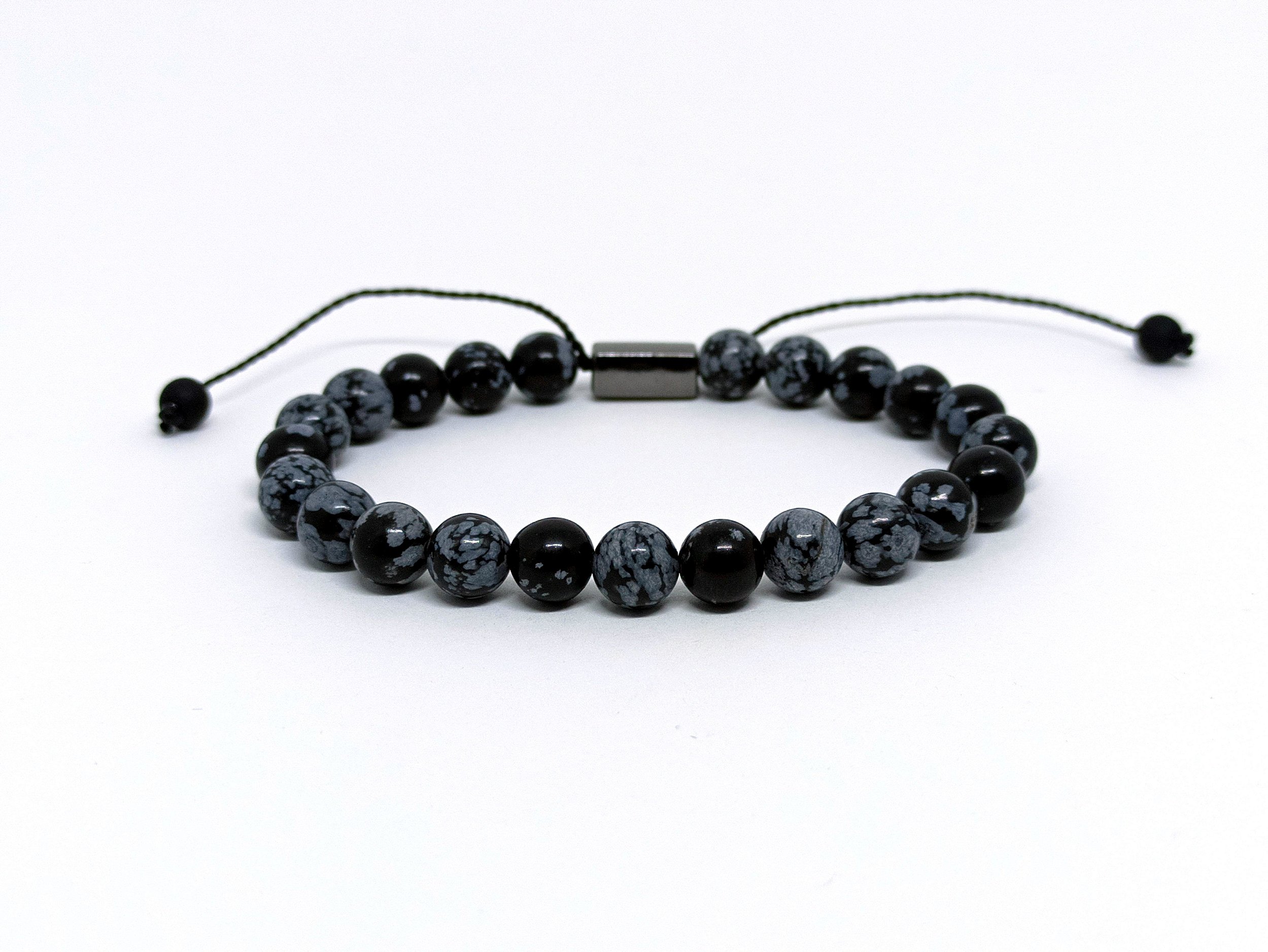 Um dos destaques da nossa coleção! Confeccionada em Obsidiana Floco de Neve, esta pulseira com certeza valoriza qualquer look.